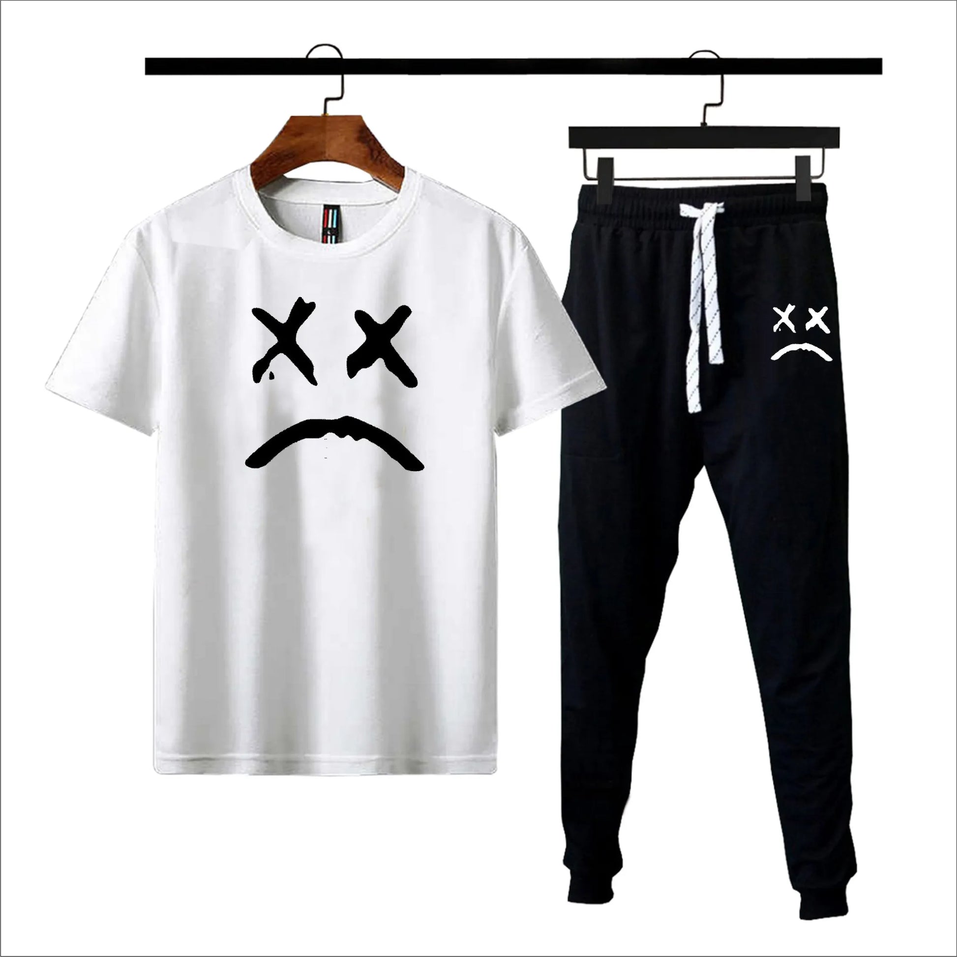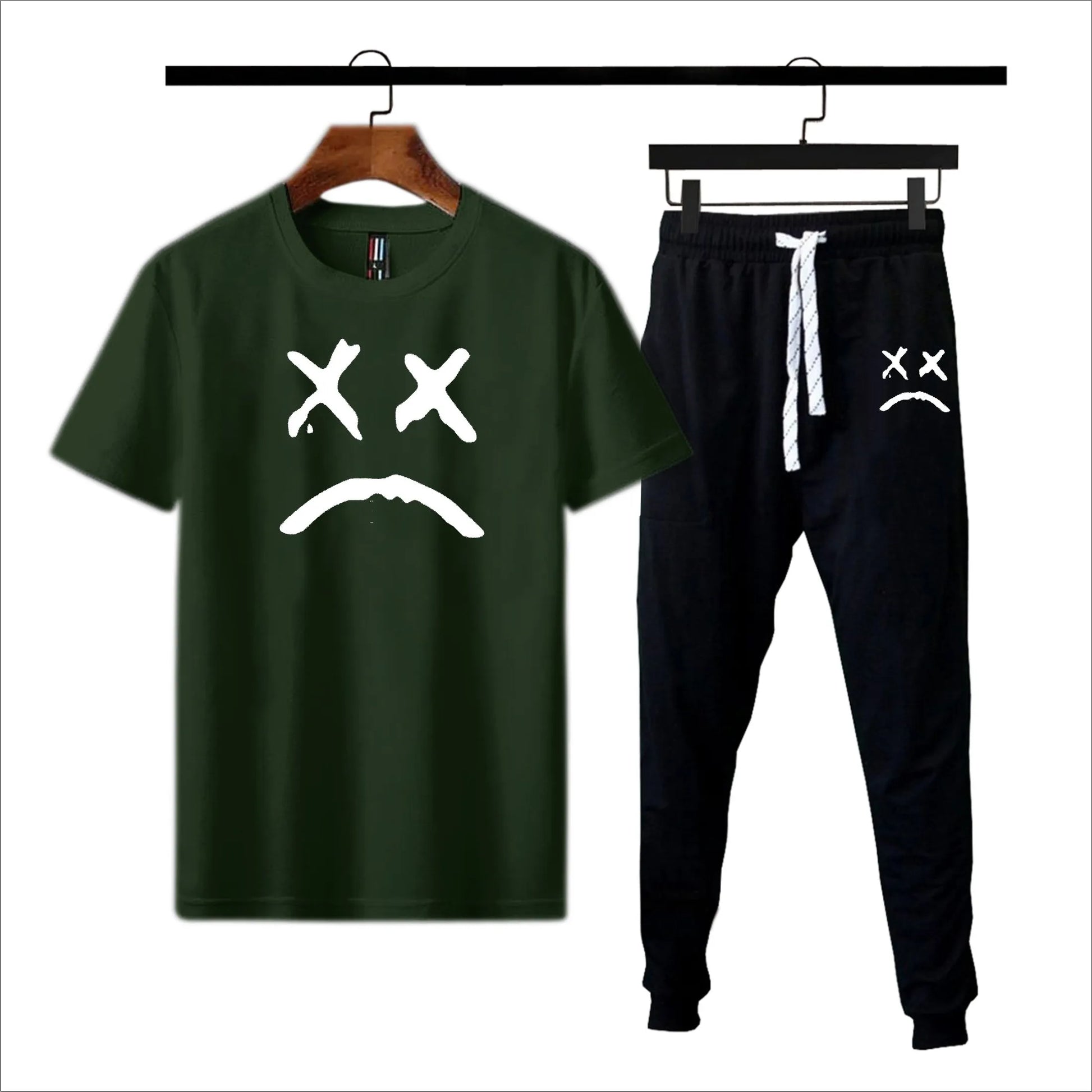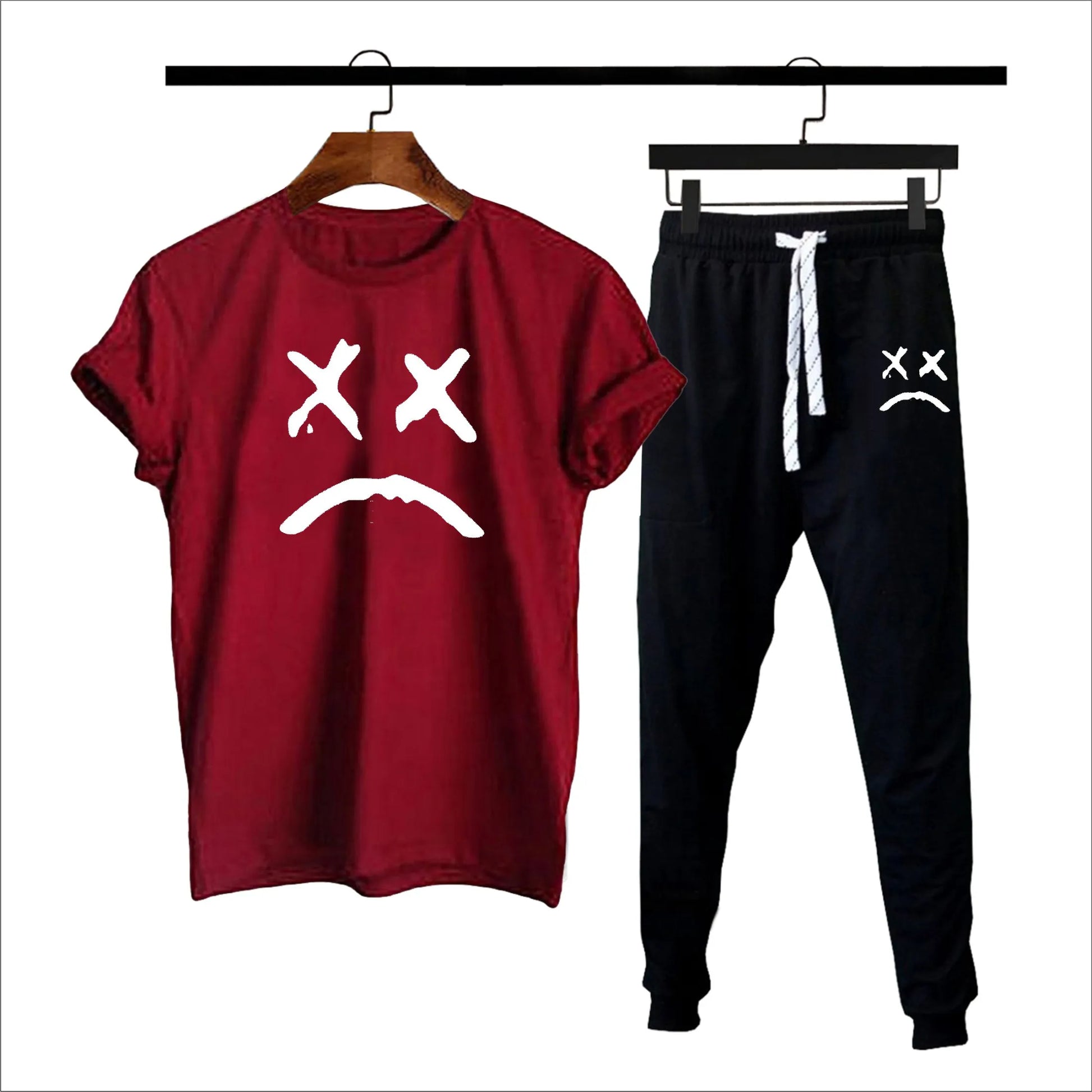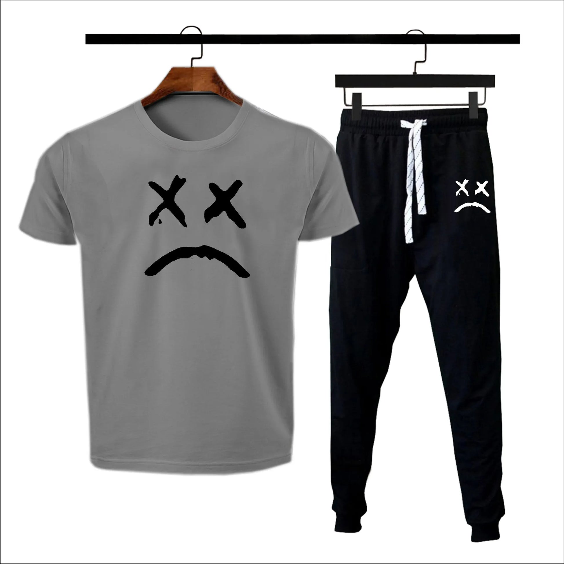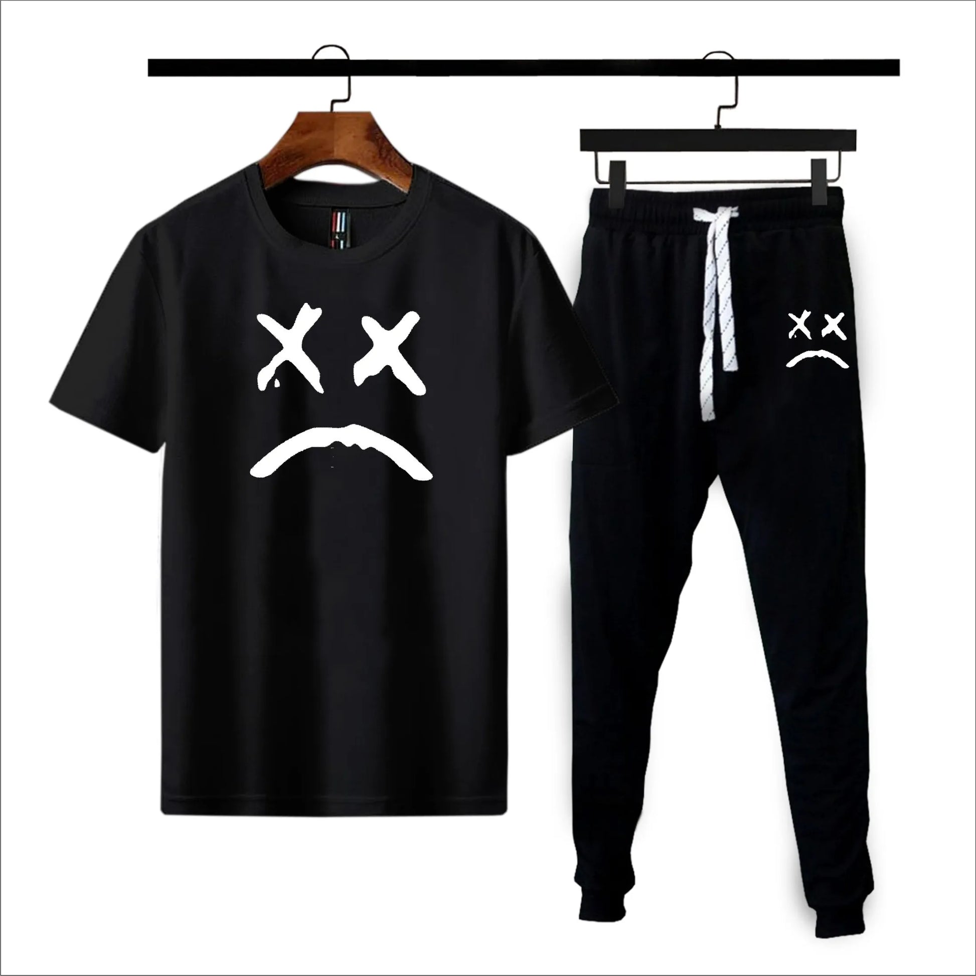 Black printed gymwear summer tshirt + trouser soft and comfy tracksuit for men and boys