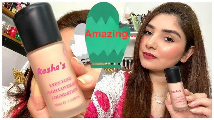 - Kashe's Eventone High Coverage Foundation – A 24-hour, waterproof formula with a soft matte finish that controls oil and resists transfer.